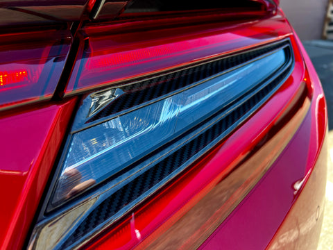 Give your 2017+ NSX Interior rear end taillights that exotic look with our Carbon Fiber trims! Acura never offered this part in carbon and with all the sexy carbon on the NSX, this piece will really help tie in the look of your rear end. The factory taillights have dull plastic inserts that look cheap.